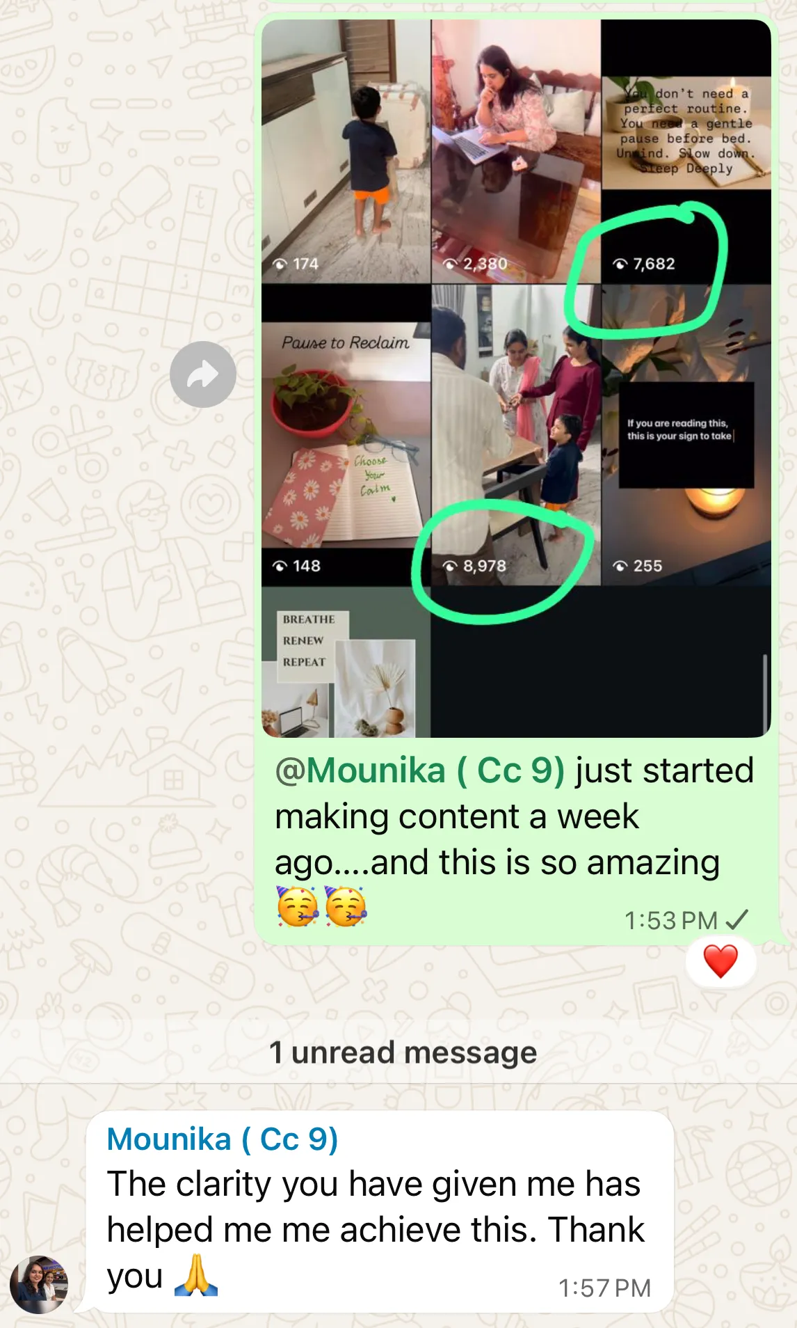 Under her guidance, I got my very first Instagram order from the very first reel I posted something I’ll always remember. She’s supported me in defining my target audience, shaping my messaging, along with small but crucial details like visuals, stories, and overall content direction.